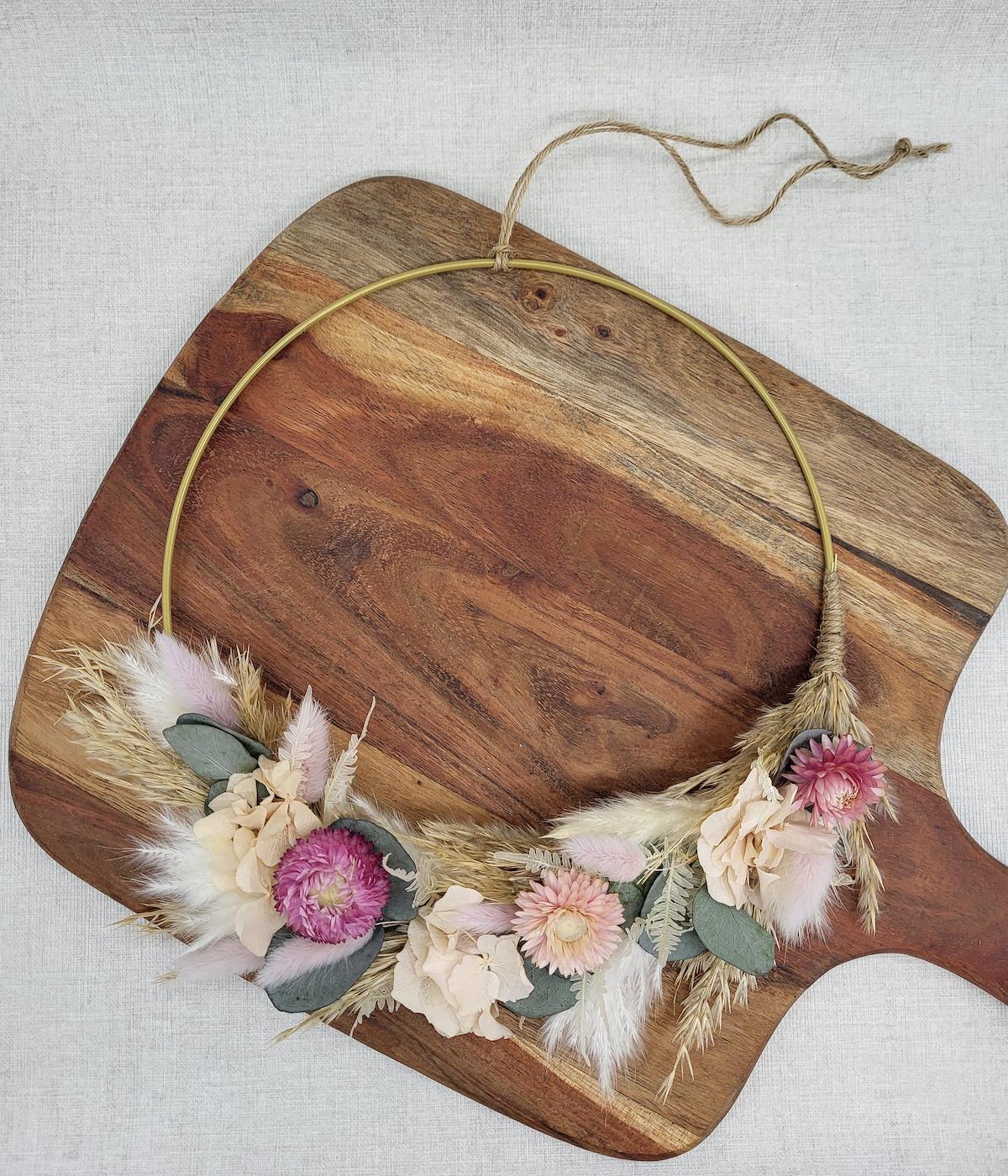Der handgebundene Trockenblumenkranz "Velvet Bloom" besticht durch seine harmonische und frühlingshafte Farbgebung. Durch die Möglichkeit, verschiedene Größen zu wählen, ist er das perfekte Geschenk zu jedem Anlass!