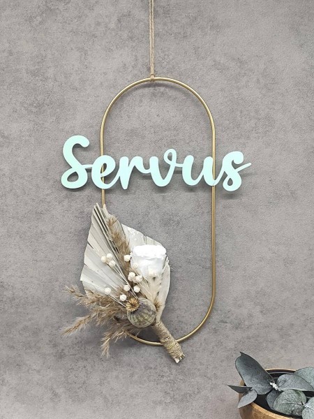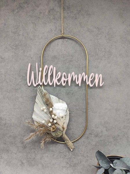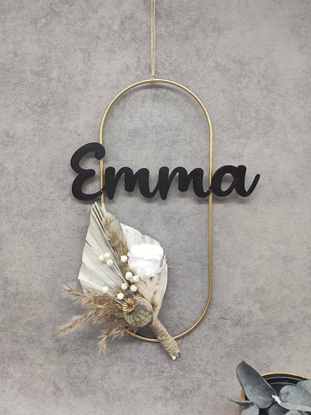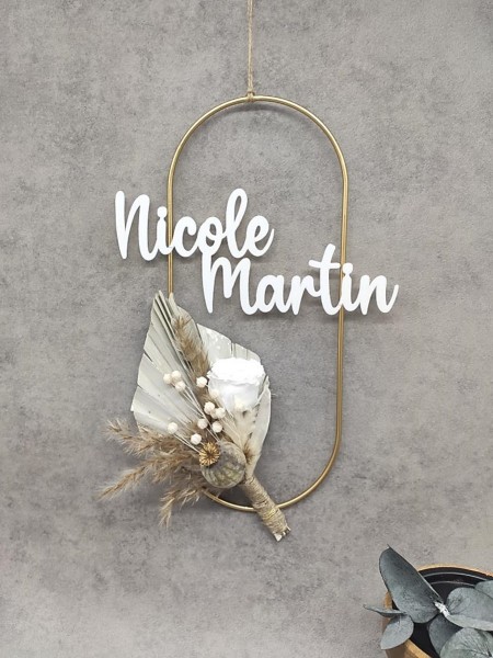 Material: Metallkranz, Kordel, Trockenblumen, Personalisierung aus PLA-Kunststoff